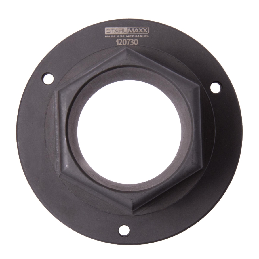 Този адаптер е предназначен за демонтаж на вибрационния демпфер на коляновия вал при определени VAG двигатели. Осигурява безопасна и контролирана работа при сервизни операции.