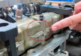 Поставете болтовете на капака и ги затегнете леко първоначално, за да фиксирате разпределителния вал.
