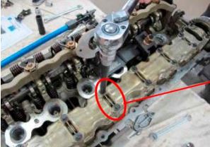 Разхлабете болтовете на горния капак на изпускателния разпределителен вал.