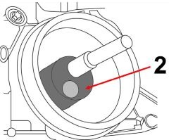 Поставете инструмента за въртене на коляновия вал (2) върху болта на шайбата.