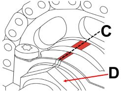 Маркировките (C) на капака на лагерите на разпределителния вал и зъбното колело трябва да съвпадат.