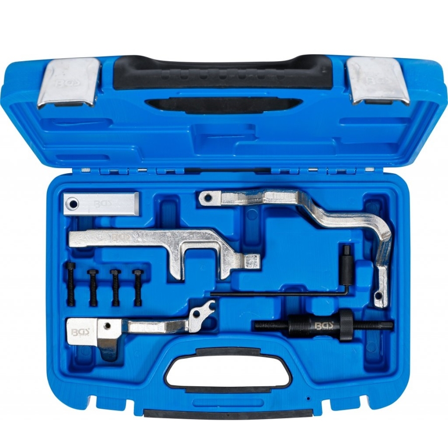 Този комплект инструменти е предназначен за различни ремонтни дейности по двигателя, включително смяна на ангренажна верига, смяна на гарнитура на цилиндровата глава, монтаж и демонтаж на разпределителен вал, както и настройка на фазите на двигателя.
