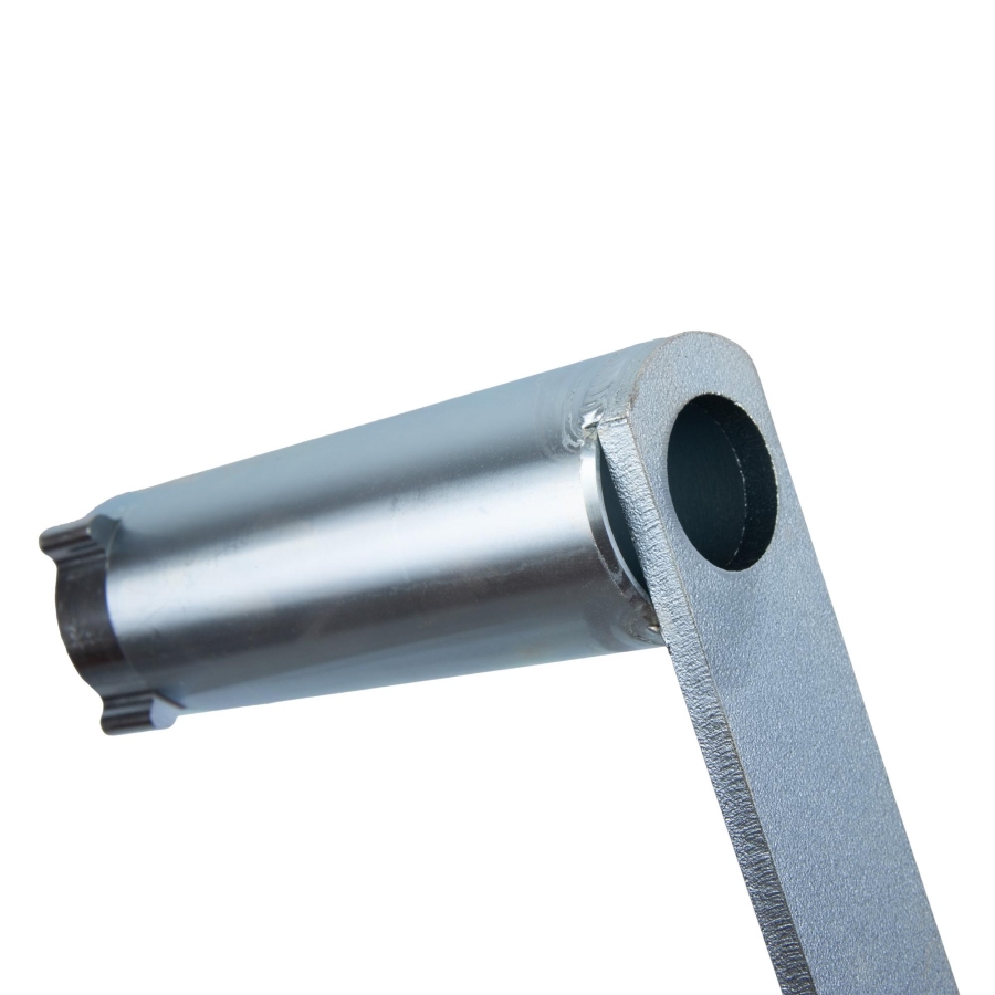 Този контра държач е предназначен за фиксиране на центрофугата върху балансиращия вал при двигатели Mercedes-Benz OM628. Необходим е за безопасно развиване и затягане на крепежните болтове по време на сервизни операции.
