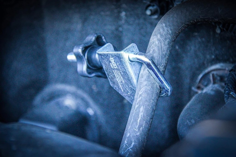 Металната рамка се върти, като осигурява равномерен натиск върху маркуча за стабилно и сигурно закрепване. Подходяща за професионална и домашна употреба.