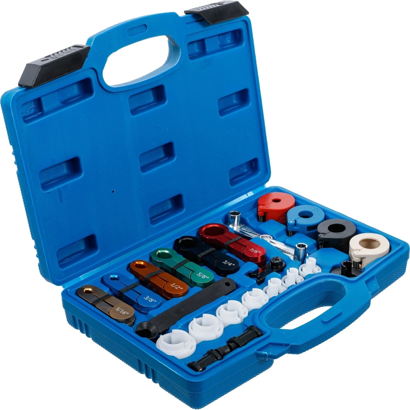 Професионален комплект от 22 инструмента за безопасно и ефективно демонтиране на бързи съединения на AC и горивни линии, осигуряващ безповредно разкачане.