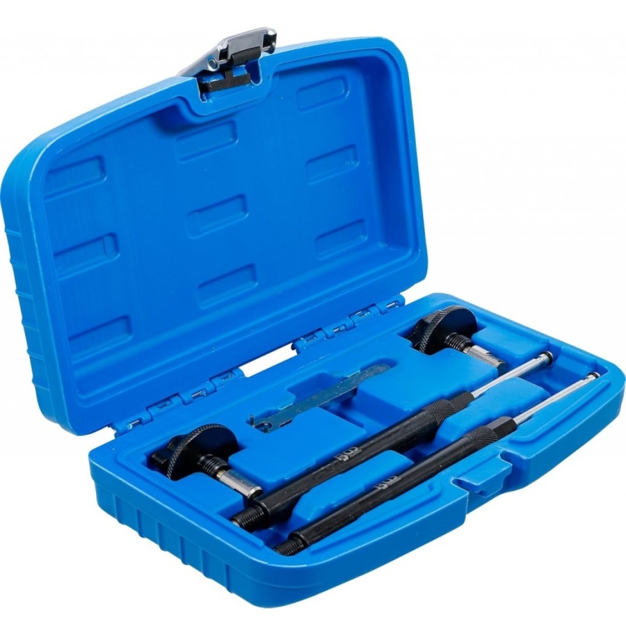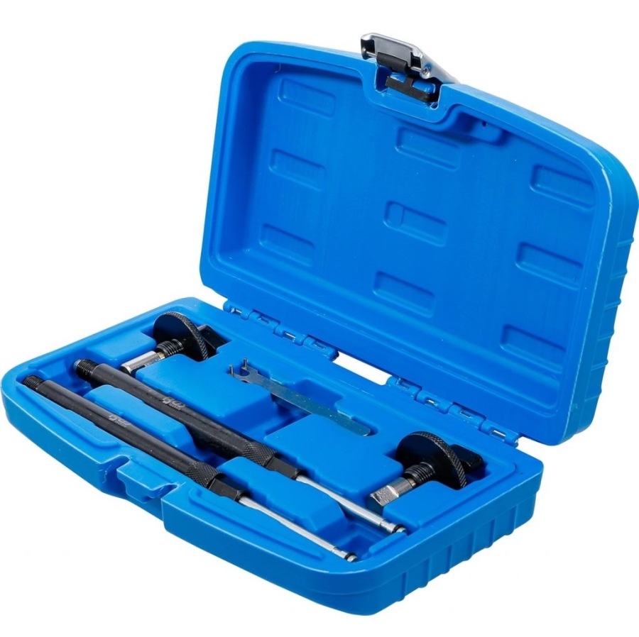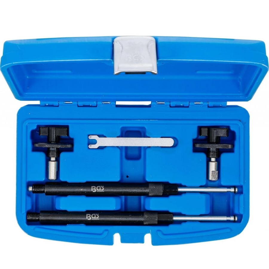 Комплект инструменти, предназначен за фиксиране на разпределителните валове в правилната позиция на горна мъртва точка (ГМТ) по време на ремонт или обслужване на ангренажната система. Позволява работа по двигателя без загуба на синхронизацията на разпределителните валове.