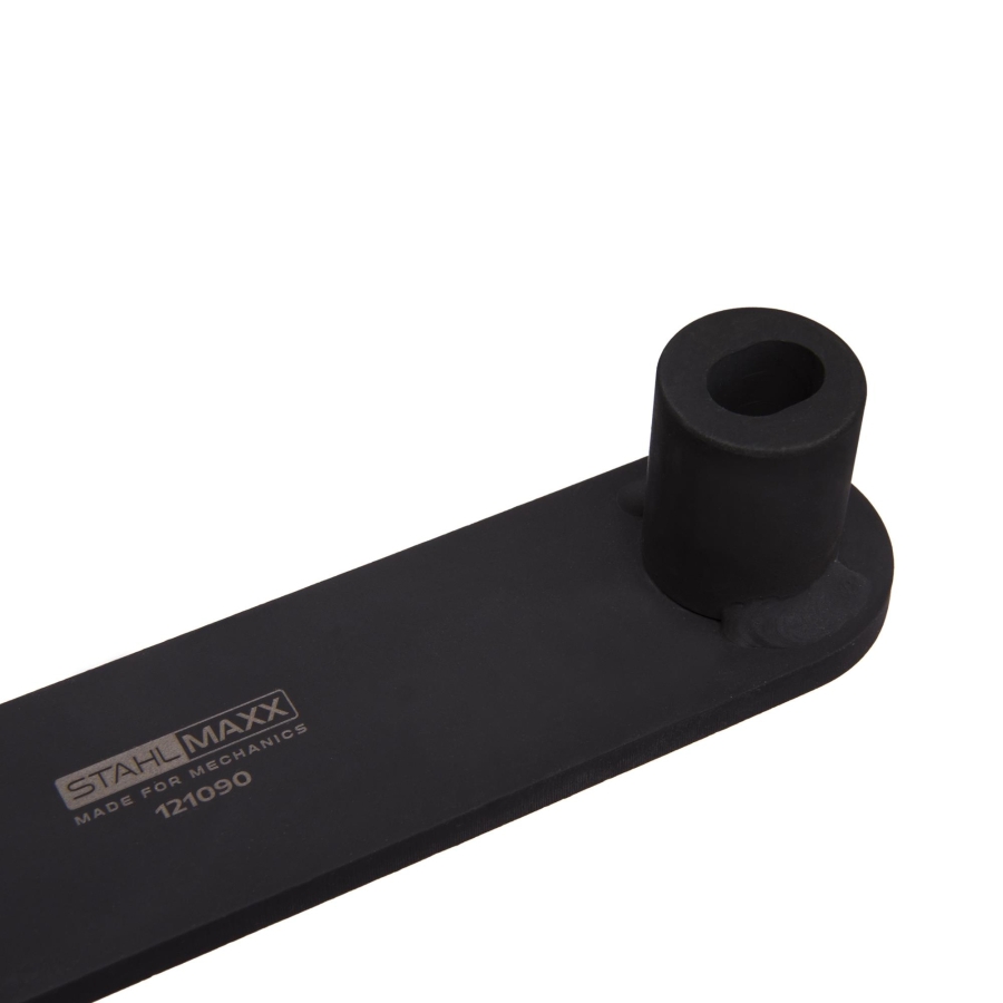 This specialized counterhold tool is designed to securely hold the crankshaft during service procedures on BMW N63, S63, and N74 engines. It is essential when loosening or tightening high-torque crankshaft bolts, preventing unwanted rotation.