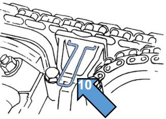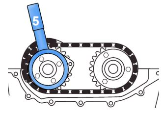 When setting engine timing, the chain pre-tensioning tool is applied to the primary timing chain.