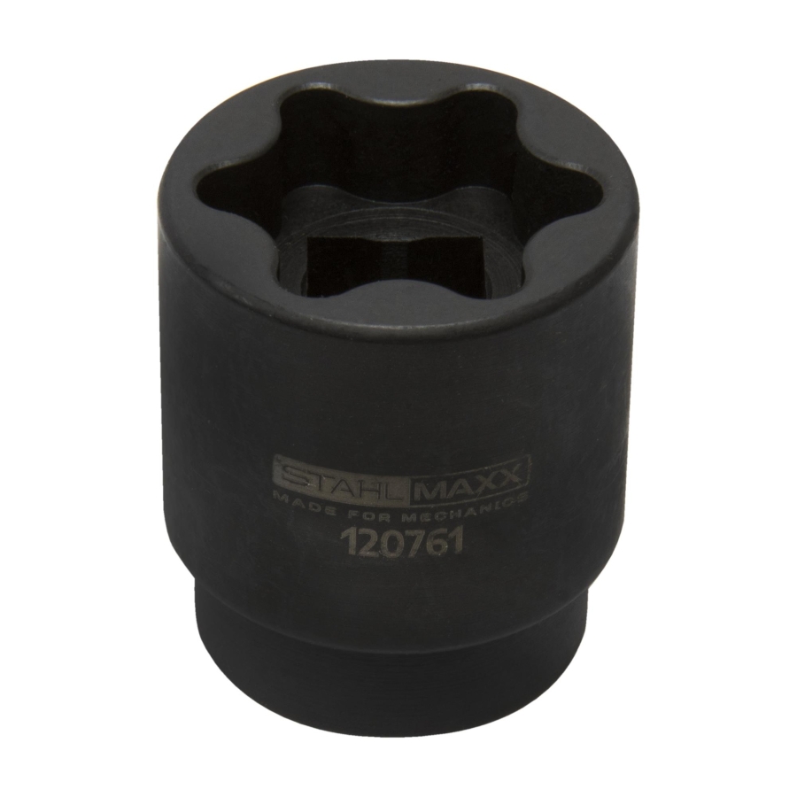 This specialized socket tool is designed for loosening the valves of the camshaft adjustment system. Due to the tightly enclosed outer housing of the adjuster unit, a precisely fitting tool is required, making this socket essential for proper service work.