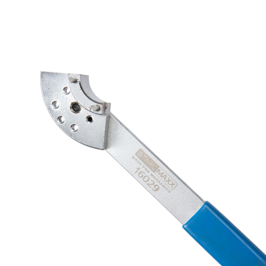 Unealta este prevăzută cu o manetă reglabilă care permite tensionarea precisă a curelei de distribuție. Designul său permite utilizarea eficientă chiar și în compartimentele motor înguste sau greu accesibile.