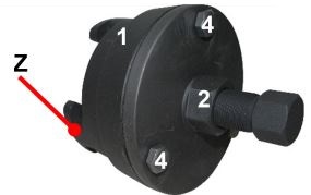Această unealtă specializată este destinată blocării (contra-sprijinirii) fuliei arborelui cotit (amortizor de vibrații) în timpul lucrărilor de service. Permite slăbirea și strângerea șurubului central fără a transmite forțe nedorite către componentele interne ale motorului.