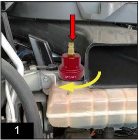 - Screw the appropriate vehicle adapter onto the expansion tank filling opening (Fig. 1).