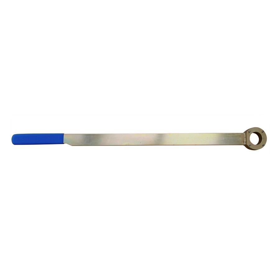 Crankshaft pulley holding tool used to secure the crankshaft during removal and installation of the pulley bolt. Prevents engine rotation and allows controlled torque application.
