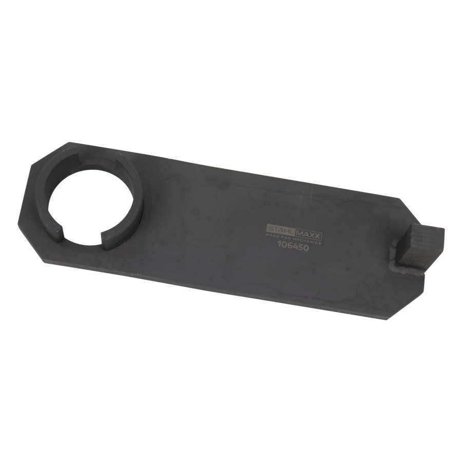 Această unealtă este destinată blocării amortizorului de vibrații și a fuliei arborelui cotit în timpul demontării și montării șurubului central la motoare Audi V8. Asigură o intervenție sigură în aplicații cu cuplu ridicat.