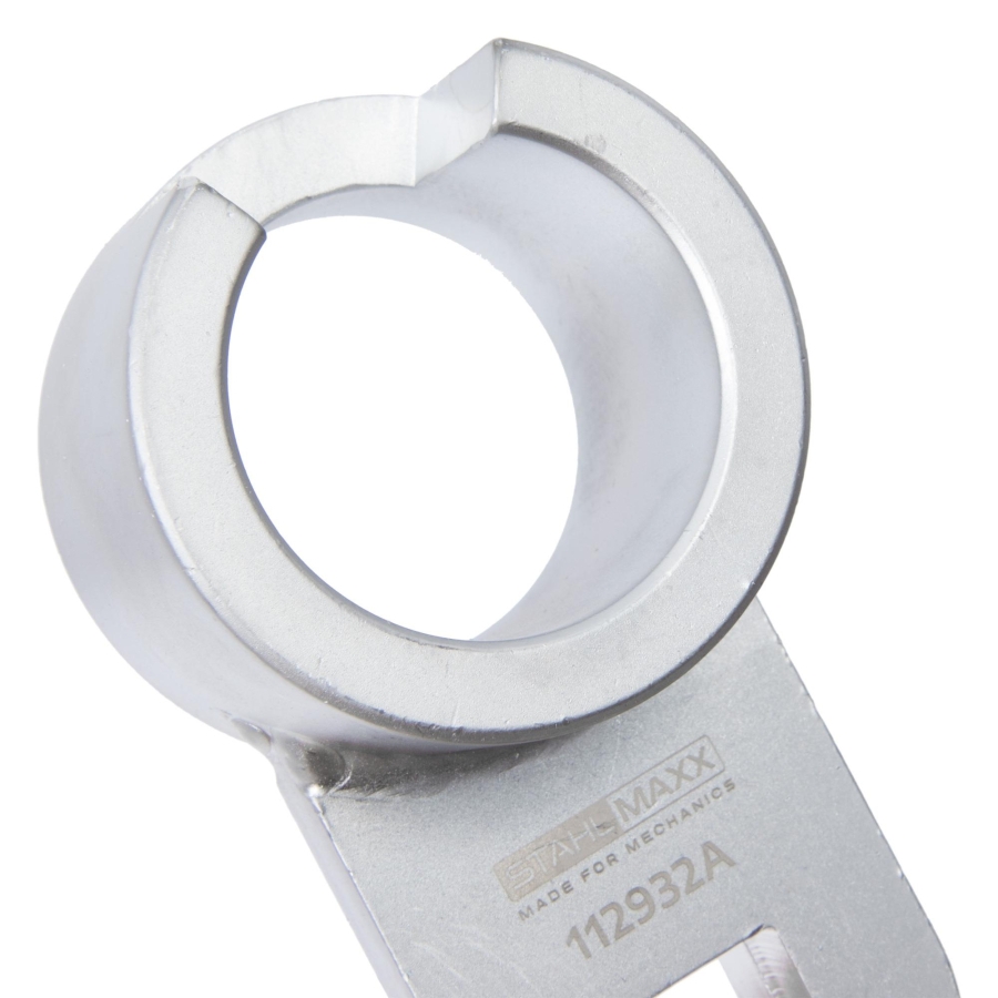 Acest dispozitiv robust este conceput pentru blocarea sigură a arborelui cotit în timpul slăbirii și strângerii șurubului central. Este indispensabil la demontarea amortizorului de vibrații, în special în timpul reparațiilor motorului, schimbului de distribuție sau înlocuirii simeringului arborelui cotit.