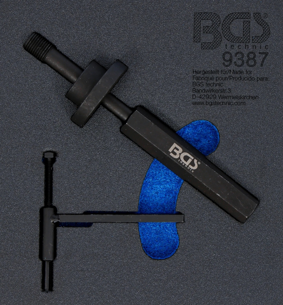 Този специализиран комплект е предназначен за прецизно центриране на капака на ангренажния механизъм и за безопасен демонтаж на зъбното колело на високонапорната горивна помпа. Осигурява правилно позициониране и предотвратява повреди по време на сервизни операции.