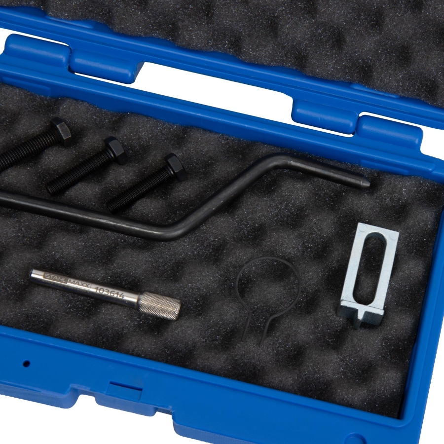 Този висококачествен комплект инструменти е предназначен за прецизно регулиране на газоразпределението при 2.0L HDI дизелови двигатели на Citroen, Fiat, Lancia, Opel, Peugeot и Toyota. Позволява сигурно фиксиране на разпределителния и коляновия вал по време на ремонти или смяна на ангренажния ремък.