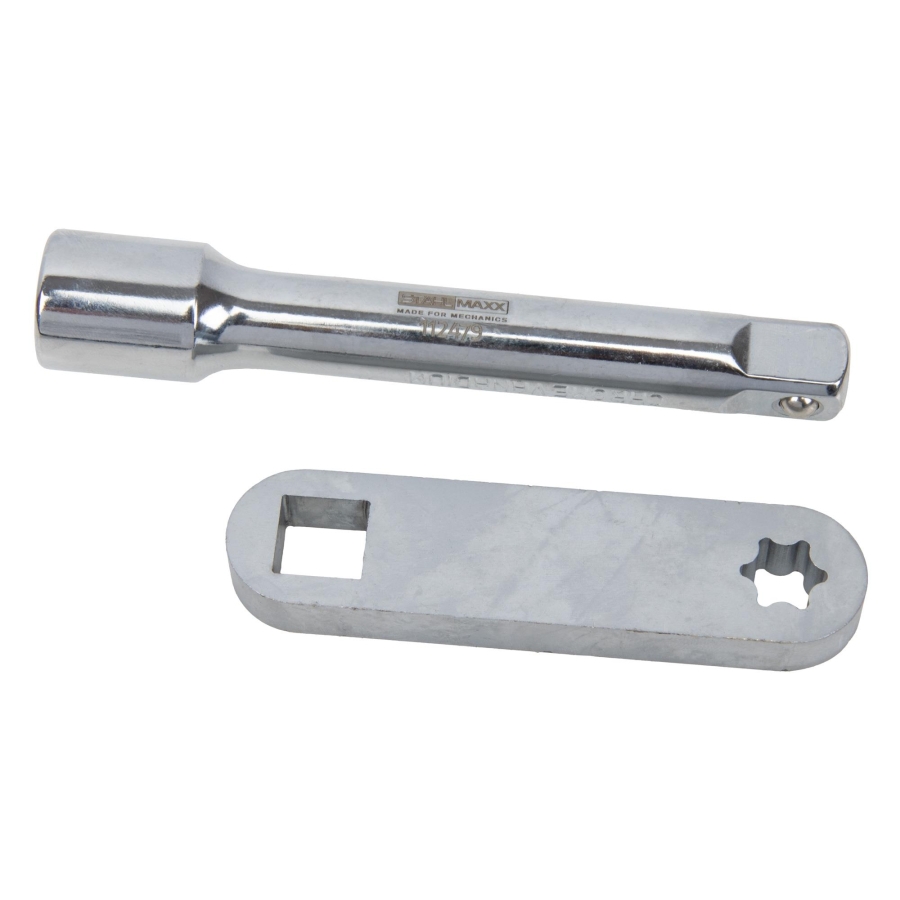 This specially designed Torx tool is used for loosening camshaft sprocket bolts on Mercedes-Benz and Jeep OM651 engines. It enables service work without unnecessary disassembly of surrounding components.