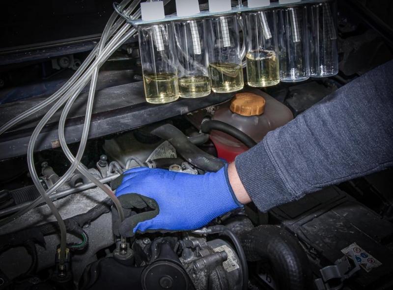 This Common Rail injector tester enables workshops and advanced hobbyists to quickly detect defective injectors by comparing fuel return flow between cylinders – an effective method for diesel engine troubleshooting.