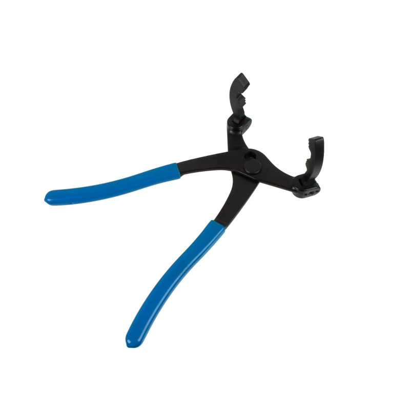 Special pliers with adjustable jaws for efficient oil and fuel filter handling, offering 90° rotation and multiple clamp settings for maximum flexibility in tight spaces.