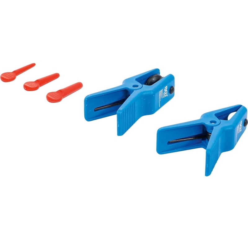 This 5-piece hose pinch-off pliers set is an essential tool for service work on vehicles. It allows technicians to temporarily seal brake pipes, fuel hoses, power steering hoses, and air conditioning lines, preventing fluid loss and contamination during maintenance or repair.