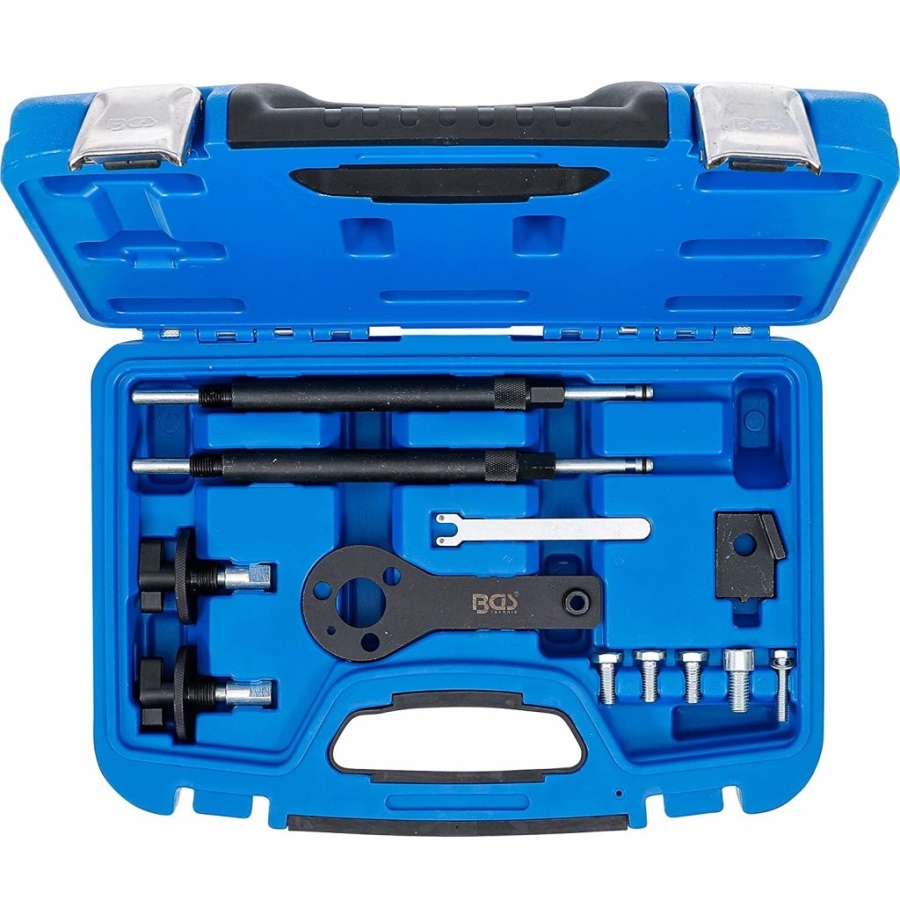 Professional timing tool set designed for precise camshaft and crankshaft alignment during timing belt service, cylinder head repairs, or head gasket replacement.