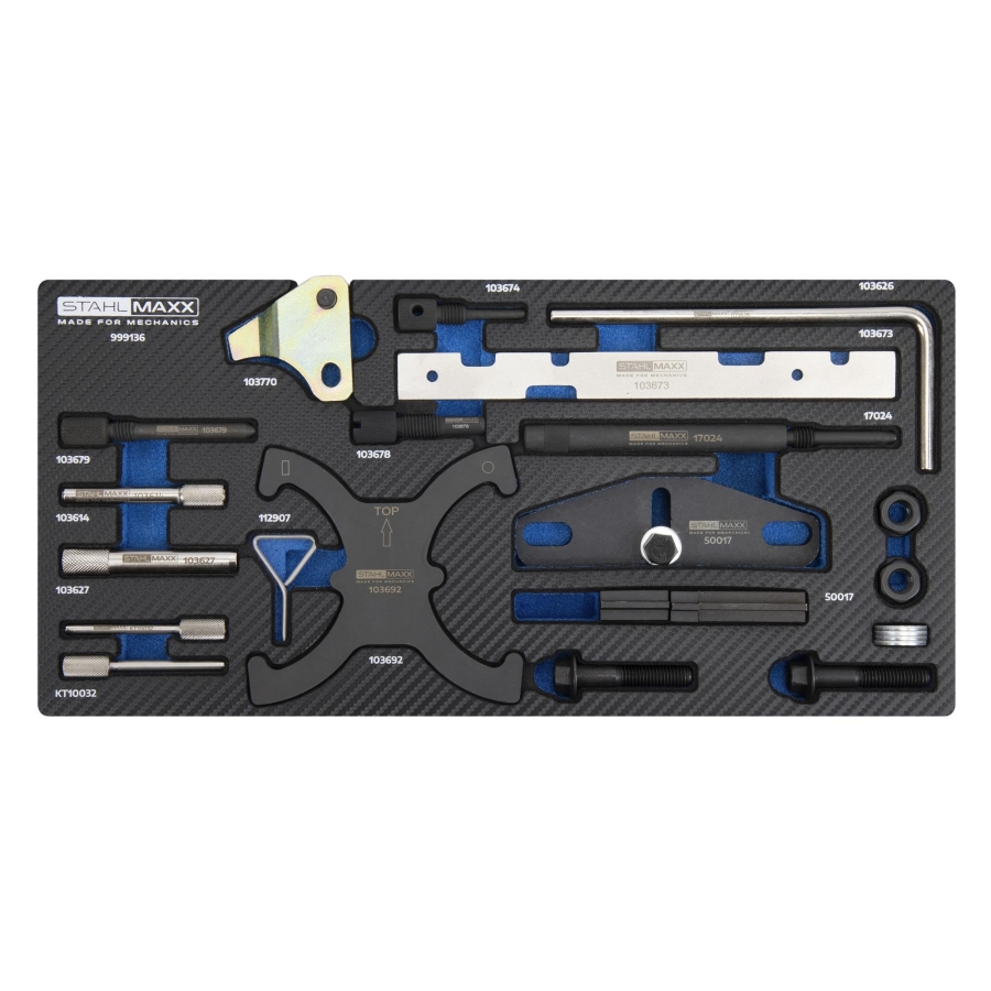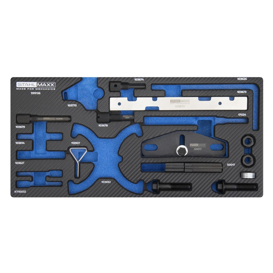 ✔ Includes tools for camshaft, crankshaft, flywheel locking and alignment