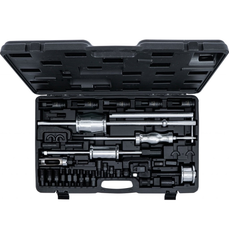 Acest set de extragere a injectorului este conceput pentru montaj și demontare sigură și eficientă a injectoarelor diesel. Cu o gamă completă de adaptoare, ciocane culisante și unelte speciale, setul acoperă cele mai comune tipuri de injectoare de pe piață și este adaptat pentru uz profesional.