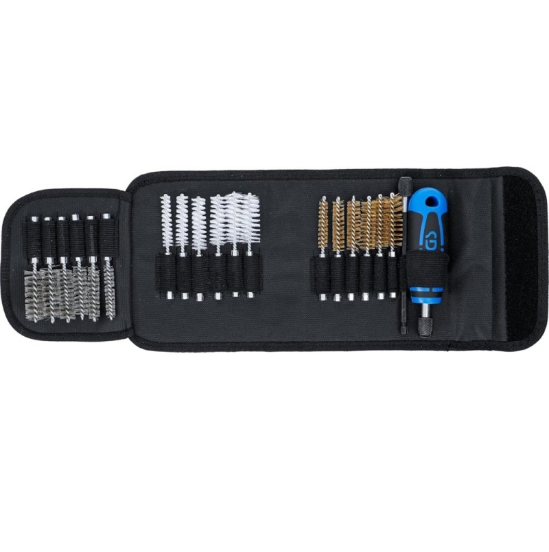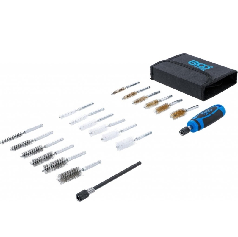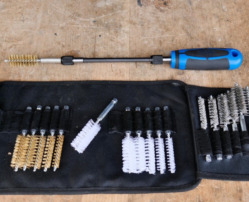 • Trei tipuri de perii pentru materiale și sarcini diferite (alamă, nylon, oțel inoxidabil)