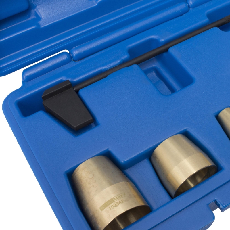 Kit profesional pentru poziționarea precisă a unității pompa injector și montarea O-ringurilor. Compatibil cu anumite modele VW și Audi, precum și cu motoare diesel cu 4, 5 și 10 cilindri. Include șabloane și manșoane de montaj din alamă pentru asamblare precisă.