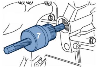 Instrumentul inclus (6), similar cu unealta (X), este utilizat pentru alinierea unității Double VANOS.