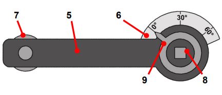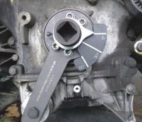 Montați toate uneltele conform imaginii de mai sus și strângeți șurubul flanșei fuliei arborelui cotit cu un unghi de rotație specificat (consultați documentația de service).