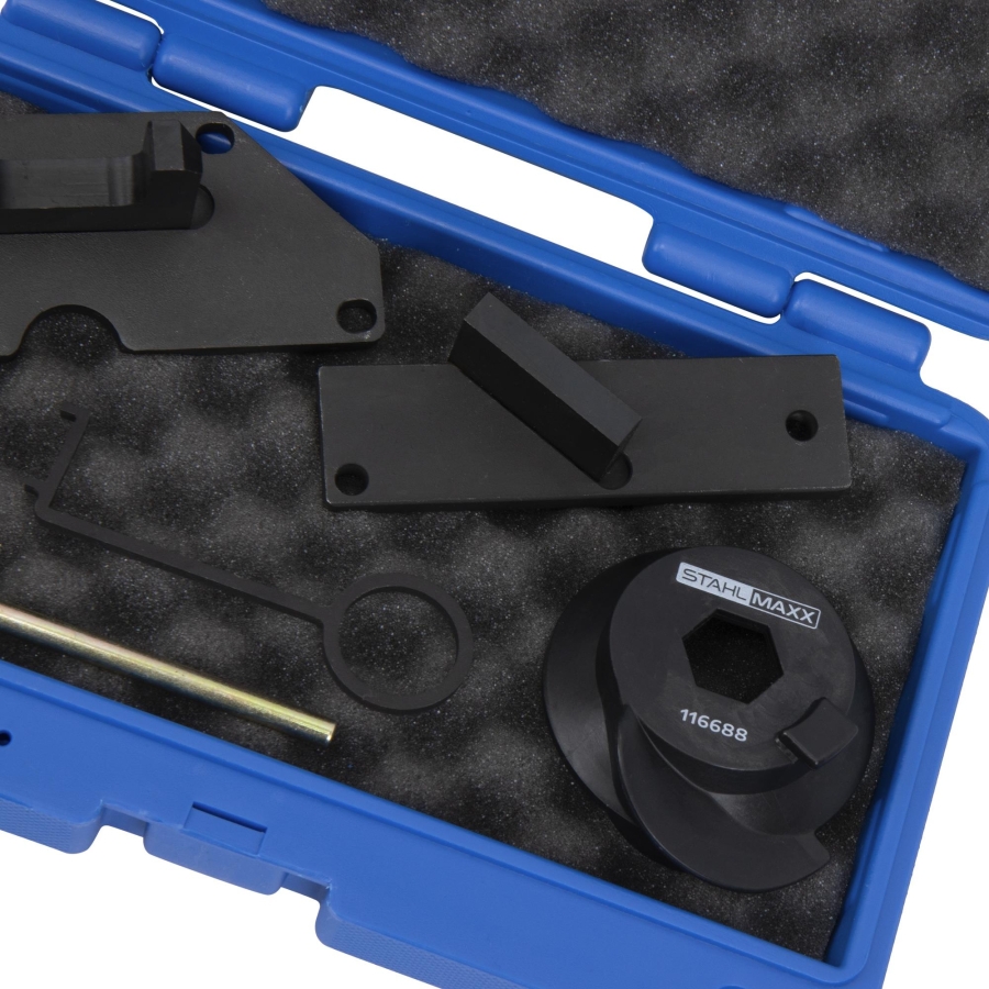 Acest set de scule este conceput pentru verificarea, blocarea și reglarea distribuției la motoare PSA și Opel 1.2L echipate cu curea de distribuție care funcționează în baie de ulei.