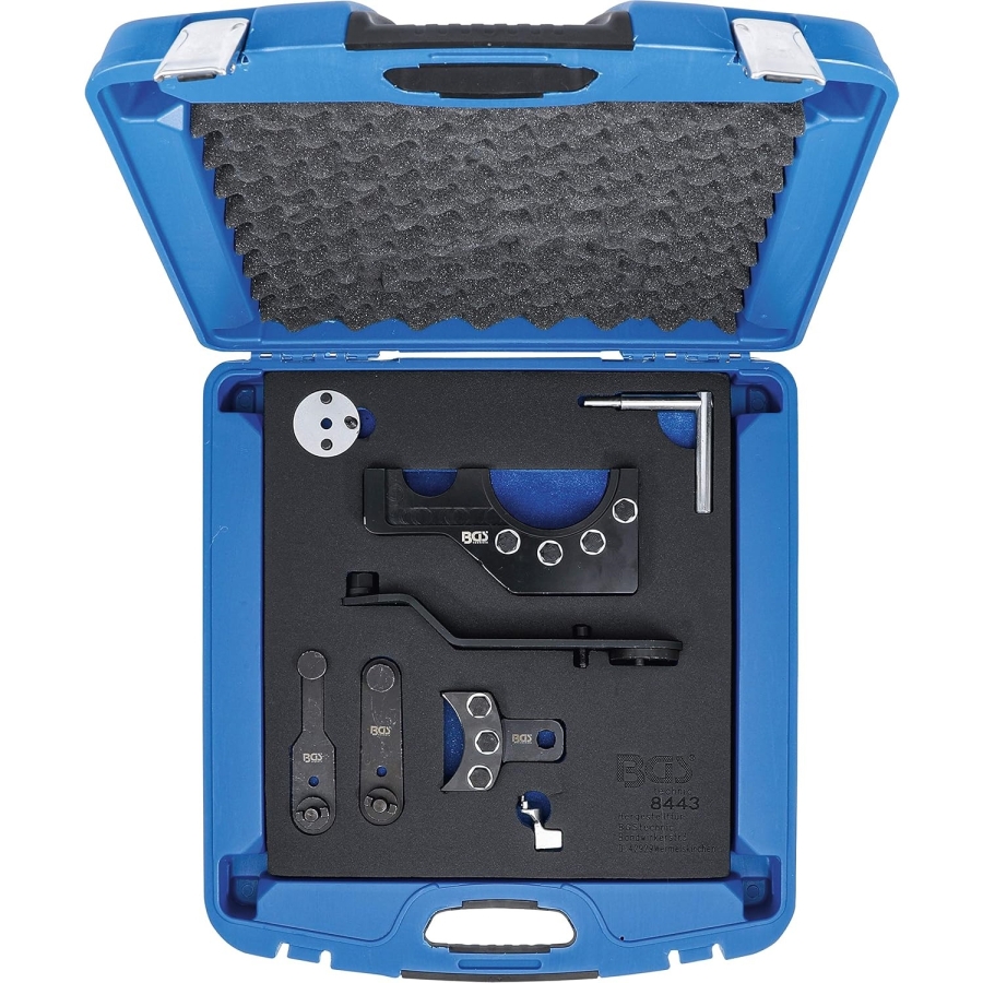 Acest set profesional este conceput pentru montarea, reglarea și blocarea precisă a pinioanelor arborelui cu came la motoarele VW TDI cu 5 și 10 cilindri. Este indispensabil pentru operațiuni precum înlocuirea curelei de distribuție și reparații ale motorului.