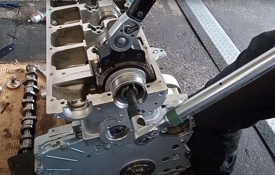 1. Mențineți cuplul și strângeți șurubul roții dințate a arborelui cu came la cuplul specificat.