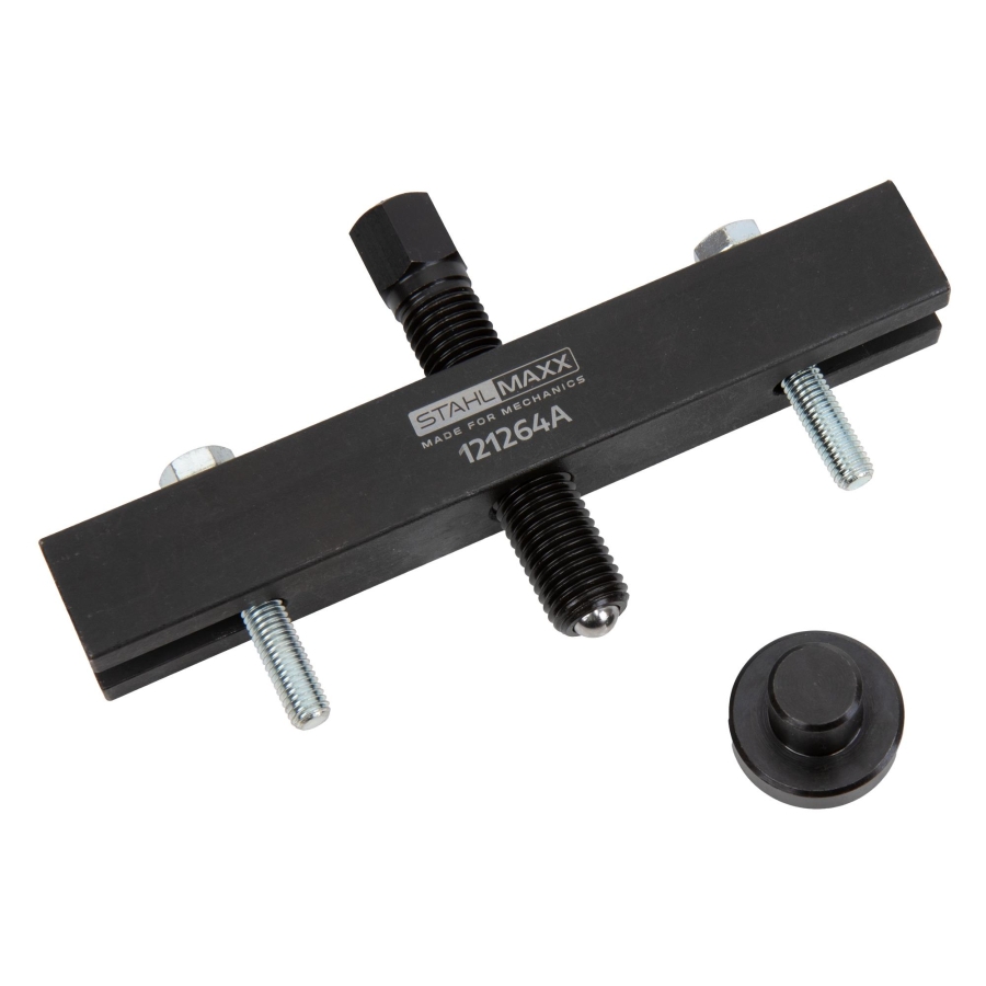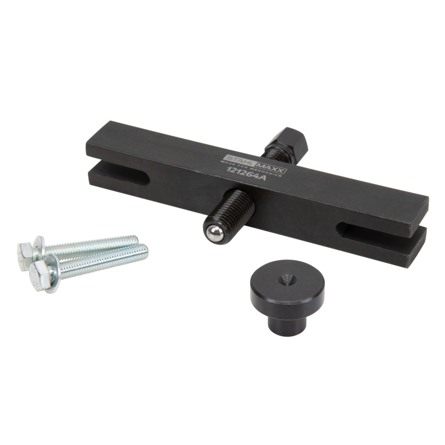 След демонтаж на централния болт на коляновия вал се поставя адаптер в отвора. Скобата се закрепва към шайбата с помощта на два M8 болта.