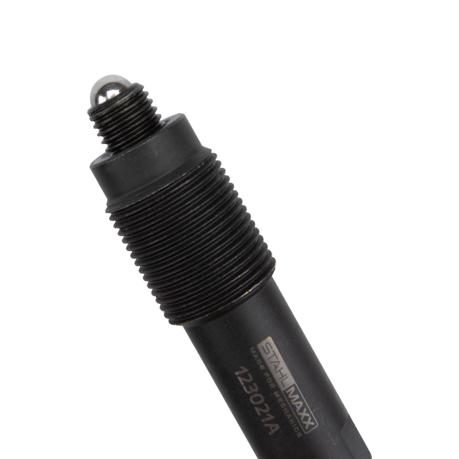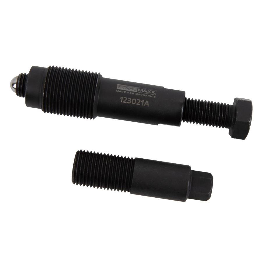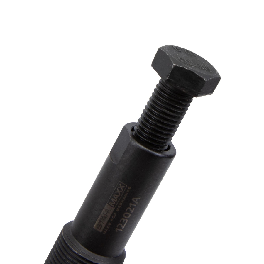 Инструментът се завива директно във вътрешната резба на шайбата на коляновия вал. Чрез централния винт се прилага контролирано усилие, което позволява безопасно демонтиране без риск от повреда.