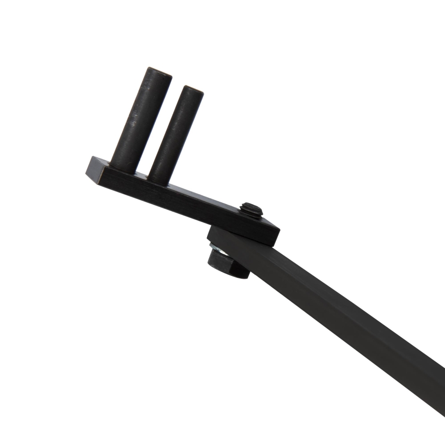Tool set used to set and verify correct timing belt tension. The clamp with weight and scale applies and measures the specified tension, while the adapter enables mounting onto the tensioner pulley.